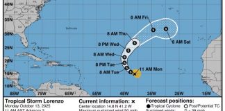 Tormenta tropical Lorenzo se fortalece en el océano Atlántico pero no...
