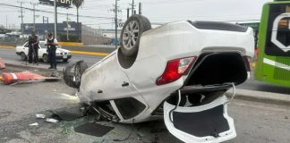 NUEVO LEÓN.- La volcadura de un vehículo particular dejó como saldo dos personas lesionadas sobre la carretera a Laredo, en el municipio de Escobedo,...