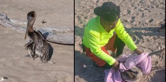 Rescatan pelícano en Playa Miramar, reportan que sufrió una lesión en...