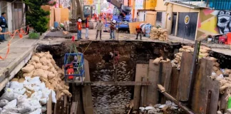 Iztapalapa: estabilizan paredes del socavón y preparan instalación de nueva tubería