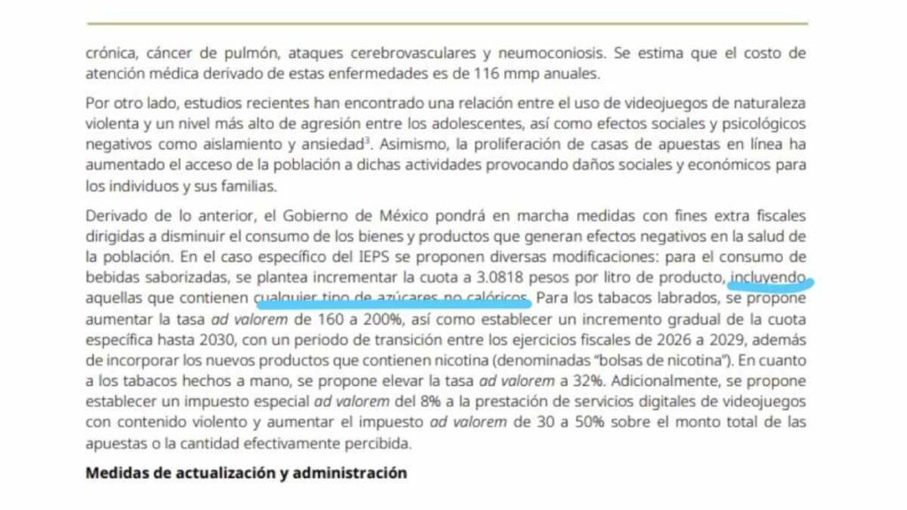 MÉXICO.- El aumento del IEPS a bebidas saborizadas en 2026 impactará directamente en los precios de refrescos y también en las aguas minerales con endulzantes o azúcares no calóricos, de acuerdo con lo planteado en el Paquete Económico 2026.