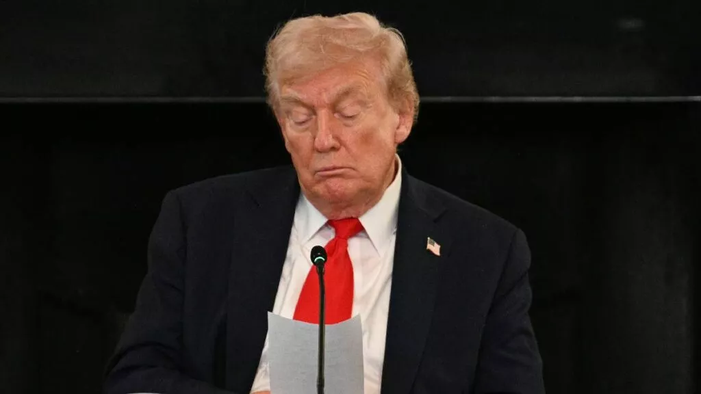 Trump recibe la nota del anuncio en plena reunión