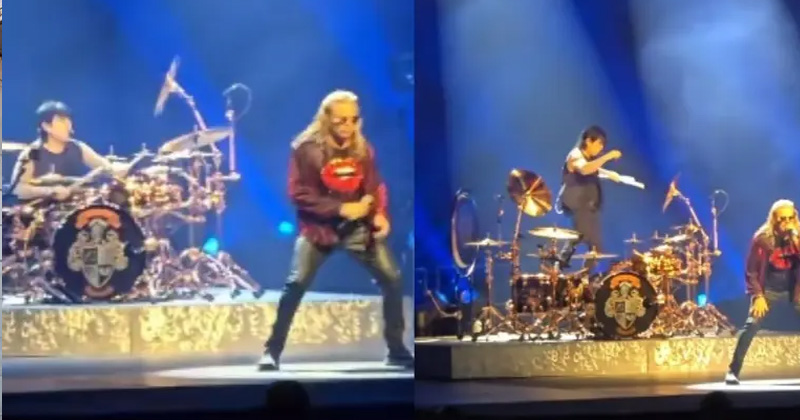 El momento fue notorio para algunos asistentes, aunque pasó desapercibido para sus compañeros de banda.