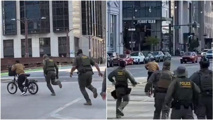 🇺🇸 | Varios agentes de ICE persiguieron a un hombre en el centro de Chicago después de que este los increpara. El hombre logró escapar.